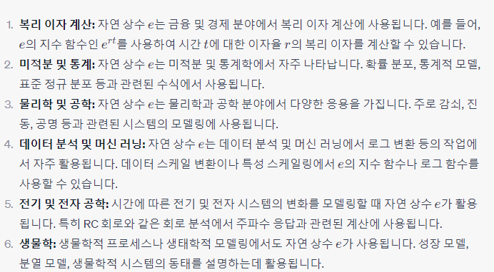 이 자연상수를 어디 쓸수 있느냐? 위와 같이 쓸 수 있습니다.